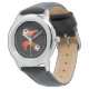 Montre classique pour enfants bracelet en cuir en noir avec imprimé sporty flambant balles de football. Choisissez cette montre dans plusieurs styles. Customisez cette montre ou achetez tel quel. Image stock all-free-download.com