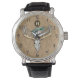 Bass Jumping sur Big Rack Deer Skull Watch. Parfait pour le chasseur de basse pêche! Ajoutez simplement le monogramme initial et il est prêt à partir! Design dessiné à la main et couleur eau par @Tina Hesskew de Fishing Hunting Life. Recherchez les produits correspondants dans Fishing Hunting Life Store.