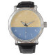 N'importe quel horloger sait que les montres sont plus que de simples gardiens du temps. Ce sont des oeuvres d'art. Montrez votre bon goût en portant cette belle montre avec un bracelet en cuir vintage et un beau visage bouffé et bleu ciel avec des chiffres blancs classiques.