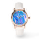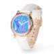 Une élégante montre en or rose au design abstrait bleu liquéfié. Cette jolie montre est munie d'un élégant bracelet en cuir blanc. Le visage de la montre a un message texte. Le texte et les photos sont personnalisables, et peuvent être facilement personnalisées pour répondre à vos besoins. Cette montre unique et belle est le meilleur cadeau pour votre femme, petite amie et maman. Grand cadeau pour anniversaire, mariage, anniversaire, fête, Saint Valentin, fête des mères, et pour vous-même! Un bijou unique, qui fera que toute femme se sentira aimée et spéciale !