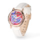 Une élégante montre en or rose avec un beau design abstrait rose, rouge et bleu liquéfié. Cette jolie montre est munie d'un élégant bracelet en cuir blanc. La face de montre a un message texte. Le texte et les photos sont personnalisables, et peuvent être facilement personnalisées pour répondre à vos besoins. Cette montre unique et belle est le meilleur cadeau pour votre femme, petite amie et maman. Grand cadeau pour anniversaire, mariage, anniversaire, fête, Saint Valentin, fête des mères, et pour vous-même! Un bijou unique, qui fera que toute femme se sentira aimée et spéciale !