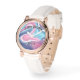 Une élégante montre en or rose avec un beau design abstrait rose et bleu liquéfié. Cette jolie montre est munie d'un élégant bracelet en cuir blanc. La face de montre a un message texte. Le texte et les photos sont personnalisables, et peuvent être facilement personnalisées pour répondre à vos besoins. Cette montre unique et belle est le meilleur cadeau pour votre femme, petite amie et maman. Grand cadeau pour anniversaire, mariage, anniversaire, fête, Saint Valentin, fête des mères, et pour vous-même! Un bijou unique, qui fera que toute femme se sentira aimée et spéciale !