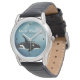 Cette montre présente une belle aquarelle de la Baleine tueuse avec son nom latin, Orcinus Orca. -