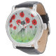 Whimsical Black Cat et Red Poppies Watch, montre amusante conçu spécialement pour les amoureux de les chats.