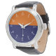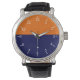 Vous apprécierez cette montre classique et élégante au visage orange et bleu foncé.