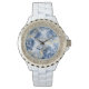 Montre personnalisée pour femme en marbre bleu avec chiffres arabes – Élégante montre en rhinestone – Cadeau de mariage, d'anniversaire ou d'Aïd