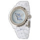 Magnifique et élégante Montre en émail blanc en pierre de rhinite avec Coquillage bleu Bijou Aquamarine Design Parties scintillant - Grand Accessoire de mode été et plage!