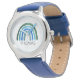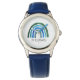 Montre Bois mignon Boho aquarelle arc-en-ciel et nom bleu