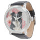 A great gift idea, choose from a wide variety of styles for him, her or even children's watches, featuring a Border Collie sitting against a backdrop of big, bold pink lilies in a botanical dog lover image.