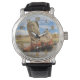 De vieilles bottes de cowboy usées avec des éperons sur mesure dressées contre un ciel et un paysage spectaculaires du Wyoming font une image étonnante sur cette montre. Les éperons ont d'authentiques pesos mexicains des années 1880 pour les rouleaux, et les mots "Yeeha" pour les rendre encore plus intéressants !
