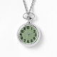 Cette montre pour femmes a un design art déco de triangles et de diamants qui ressemblent à des corps en vert clair et vert sauge.