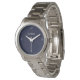 Cette élégante montre bracelet en acier inoxydable personnalisée fera un grand cadeau pour les hommes ou les femmes. Son cadran bleu marine et son style classique font qu'il conviendra à de nombreux choix de tenues.