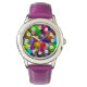 Bubbles (Roman Face) Bézel réglable pour enfant Montre en ruban violet en acier inoxydable. Image Copyright (C) Kenneth Kenji Yoncich. Tous droits réservés.