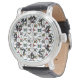 Cette montre pour hommes a un design moderne du milieu du siècle d'étoiles quatre points et trois points dans des couleurs rétro.