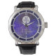 Un design élégant en zodiaque avec une bordure bleu foncé, des étoiles de galaxie avec le signe du cancer zodiaque dessus. Customisez facilement cette montre à votre nom et date de naissance. - conçu avec les Zaubershirts -