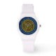 Ce mandala sur le thème de Capricorn représente une pierre lapis lazuli entourée du symbole du signe, de la constellation et du symbole alchimique de la Terre parmi les fibres et les tissages. Cette montre est disponible dans une variété de couleurs, de tailles et de styles, y compris des tailles pour les enfants et les adultes.