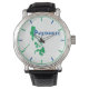 Montre cadeau philippine. Carte stylisée des Philippines sur une montre bracelet. Imprimé en vert et bleu sur blanc. Cadeau pour un Philippin ou quelqu'un lié aux îles philippines.