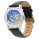 Montre représentant la peinture animale de Louis Wain Chat in Sea of Flowers (1860-1939). Un chat noir et blanc aux yeux dorés sent les fleurs jaunes. Dans l'arrière - plan violet sont des fleurs bleues. Un cadeau merveilleux pour l'art amoureux des chats et anglais.