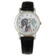 Une montre avec une paire de chevaux noirs et blancs qui traînent ensemble. Illustré avec des aquarelles.