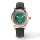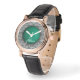 Cette montre exquise est une véritable oeuvre d'art, alliant design classique et élégance moderne. Le bracelet en cuir noir ajoute une touche de sophistication, tandis que le coque et la lunette en or rose créent un look luxueux.Le cadran est un chef-d'oeuvre en lui-même, avec un délicat motif en dentelle et un centre en relief en cuir vert vif avec votre initiale subtilement entrelacé avec votre prénom dans une belle typographie. C'est un parfait mélange de féminité et de style. Cette montre est non seulement belle mais aussi fonctionnelle, ce qui en fait l'accessoire parfait pour toute occasion. Que vous soyez prêt à organiser un événement spécial ou à le garder décontracté, cette montre ajoutera une touche d'élégance à votre look.