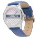Montre chic preppy rose marine en vichy motif monogramme