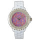 Montre Chic Retro Floral Impression sur Magenta Wrist Wat