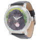 Chien de Terre-Neuve sur une montre de sport en cuir noir. Grand cadeau à n'importe qui !