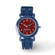 Cette montre amusante au poignet pour enfants avec un bracelet en silicone bleu peut être customisée comme vous le souhaitez. Vous pouvez CHOISIR VOTRE PROPRE COULEUR pour remplacer l'arrière - plan sur la face de montre et vous pouvez faire dire le texte à tout ce que vous voulez. Ou gardez mon design bordeaux et blanc. Tous droits réservés © 2023 Alan & Marcia Socolik.