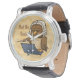 Cette montre vous aidera à garder le temps ! Voici un cadeau amusant pour le fan de musique classique ou le fan de hibou ! Ce dessin présente une jolie illustration d'un conducteur de hibou habillé comme J.S. Bach sur une feuille de parchemin arrière - plan de musique. Les hiboux sont de style Bach... et à ces prix, vous n'irez pas baroque.