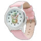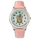 Une montre avec une merveilleuse illustration fantaisiste. Un grand hibou brun aux yeux portant un chapeau vert et une cravate d'arc.