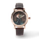 Montre vintage en or rose avec bracelet noir