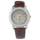 Discover timeless elegance with the Goldevine Geneve Men's Classic Leather Watch. Featuring a sophisticated silver-tone case and a rich brown crocodile-embossed leather strap, this timepiece exudes understated luxury. The cream-colored dial is adorned with distinguished Roman numerals and a unique central compass-style sub-dial, adding a touch of vintage charm and navigational flair. Perfect for the discerning gentleman, this high-quality watch is an ideal accessory for business, formal events, or adding a polished touch to everyday wear. A truly refined gift for him, combining Swiss-inspired design with classic appeal.