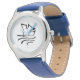 La montre classique pour enfants est montrée avec une bracelet en cuir bleu avec une empreinte religieuse baptism colombe. Customisez cette montre ou achetez tel quel.