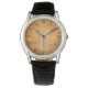 Clock dial design with Roman Numerals with a texture of warm wood background.