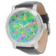 Il s'agit d'un design multi-couches griffé dans des couleurs vives et des lignes d'aérographe douces basées dans un bleu-vert rêveur, pour les gens qui rêvent en couleur! Motif de gribouillis dynamique tendance dans les couleurs de bleu, jaune, rose et vert, vivant, spontané, expression artistique, pour une occasion spéciale ou à tout moment, un accent de mode artistique amusant que tout le monde aimera. Accessoire toute tenue avec une explosion d'expression abstraite vivante. Vous pouvez également télécharger votre propre photo au lieu de la conception actuelle si vous le souhaitez. Il apparaîtra derrière les chiffres noirs. Excellent choix de nombreux styles de montre pour hommes, femmes, enfants. Pop art contemporain gai et coloré, art expressif de Sylvia Rose.