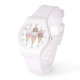 Une délicieuse montre sur le thème du dessert, conçue avec trois cônes de gaufre à la crème glacée empilée, à la vanille, au chocolat et à la crème glacée aux fraises, avec des arrosages et des cerises. Il est parfait pour les amateurs de crème glacée et égaye votre tenue. Choisissez votre groupe de montre pour l'accompagner. Il est parfait pour n'importe quel magasin de crème glacée ou de crémerie.