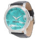Montre Cool marbré de vague Turquoise clair Nom personnal