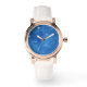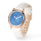 Make a stunning holiday statement with this elegant Copper Rose Gold Snowflake Women's Analog Watch! Featuring a beautiful snowy blue dial and a stylish White Leather Strap with Copper/Rose Gold finished casing, this timepiece is the perfect Elegant Holiday Watch for Her. The Snowflake Analog Wristwatch Gift is a classic Women's Seasonal Timepiece and a thoughtful Luxury Copper Finish Watch for any occasion!