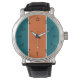 Combinant couleurs et style, cette montre présente des chiffres noirs sur un arrière - plan à rayures blanches, orange et aqua. Vous fixerez le standard de la mode chaque fois que vous porterez cette montre.
