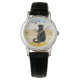 Sur cette montre, un beau chat noir est fasciné par un papillon rouge. L'image est placée sur un arrière - plan de coucher de soleil rayé rétro, légèrement en détresse. Les chiffres noirs et les marqueurs en forme de losange autour du périmètre rendent l'horloge facile à lire. Parfait pour tous ceux qui ont perdu leur coeur au charme d'un chat.