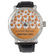 C'est une montre à thème de basket vraiment facile à customiser, pour ce modèle vous n'avez qu'à ajouter le nom. Il s'agit d'un grand cadeau personnalisé pour les anniversaires, la remise des diplômes, Noël, vacances, comme un cadeau d'appréciation, et pour toute occasion spéciale en général. Eléments sur la composition design, boules de basket, couleurs noir, orange et blanc, lettrage typographie.