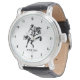 Look out for a rugged cowboy-themed watch, showcasing a sleek white face adorned with striking black numerals, and a bold image of a black cowboy riding on horseback.
