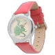 Ce très mignon petit dragon vert sur cette montre pour enfants étire ses ailes et sourit, toutes ses écailles de petit dragon sont soulignées par un contour vert foncé qui est doucement mélangé. C’est un petit dragon vert spécial que j’ai créé au crayon il y a quelque temps, j’ai numériquement amélioré l’image du dessin pour devenir une couleur verte vibrante. Le joyeux dragon mignon est unique et complètement original, il est sûr d’attirer beaucoup d’attention où que vous alliez, ce petit dragon est très beau sur cette montre cool et ne peut être vu que sur les produits fabriqués par les artoriginals. Il s'agit d'une montre pour enfants personnalisable, vous pouvez la personnaliser avec votre propre texte.
