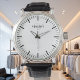 Créez votre propre montre de luxe de marque personnalisée. Classy intemporel montre cadran design avec des indices fins y compris les minutes et les heures mais sans les chiffres. Ajoutez votre propre monogramme personnalisé, nom personnalisé, nom du concepteur, initiales, année de naissance, logo, icône, image photo, etc. Face de montre moderne et minimaliste sophistiquée avec modèle de typographie de script élégant. Une montre luxueuse pour lui. Faites-en un nouveau cadeau cool pour marié, groomsmen, papa, père, mari, frère, fils, petit ami, grand-père, grand-père, beau-père, oncle, collègue, employé, patron de l'entreprise, partenaire d'affaires, collègue, meilleur ami, enseignant, entraîneur ou personne à la retraite. Idées cadeaux monogrammées uniques pour l'anniversaire, la remise des diplômes, l'anniversaire, la retraite, les jours fériés, la fête de mariage, l'appréciation, l'emploi, le devoir, etc. Grand diamètre autour de 44 mm. Style vintage classique avec bracelet bracelet en cuir noir 22mm chic. Couleur arrière - plan blanche ou personnalisée. Parfait pour les célébrations du 20ème 30ème 40ème 50ème 60ème 70ème 80ème 90ème anniversaire. Montres à quartz abordables de moins de 100 $. Idéal pour un usage quotidien décontracté et des occasions spéciales. Aussi disponible pour d'autres modèles avec bracelet en cuir brun ou en acier.