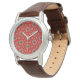 Elevate your everyday style with this Crimson Starburst Bloom watch. Designed with a striking geometric floral pattern in deep brown and beige against a bold red background, this timepiece blends art and practicality to perfection. The vibrant, boho-chic design makes it a standout accessory for both casual outfits and dressy looks. Whether you’re heading to work, a night out, or a weekend adventure, this watch adds personality and confidence to every moment. A unique gift for anyone who loves fashion, patterns, and expressive accessories.