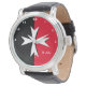 Montres : Croix Maltaise & Malte - drapeau, symbole de croix - utilisé par l'Ordre de Malte, Ordre Souverain Militaire de Malte (Ordre de Saint Jean) - patriotes nationaux, voyages, vacances, fans de sport mode. La Croix de Malte est aussi le symbole international de l'incendie, symbole de protection, insigne d'honneur.