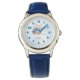 Featuring a durable blue strap, metallic bezel, and a clear dial with labeled “HOUR” and “MINUTE” hands, this watch helps kids ages 5–12 learn to tell time with confidence. Large, easy-to-read numbers and a playful theme make it both functional and fun.