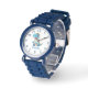 Cette adorable montre personnalisée pour enfants présente un charmant dinosaure Trex bleu.