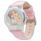 Cute kitty festive birthday watch featuring a kitten with balloons and a cupcake. Nice for a birthday girl.