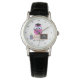 Un joli hibou rose avec des lunettes et une casquette de remise de diplômes se trouve sur une pile de livres pour l'école. Bienvenue à votre professeur de maternelle dans la classe avec cette jolie montre personnalisée. Customisez le petit tableau de bord sur cette montre avec votre propre devis personnalisé.
